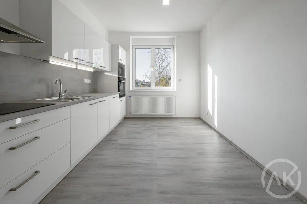 Obytný prostor je tvořen solidním obývací pokojem, moderní, novou kuchyní a koupelnou s velkým sprchovým koutem.