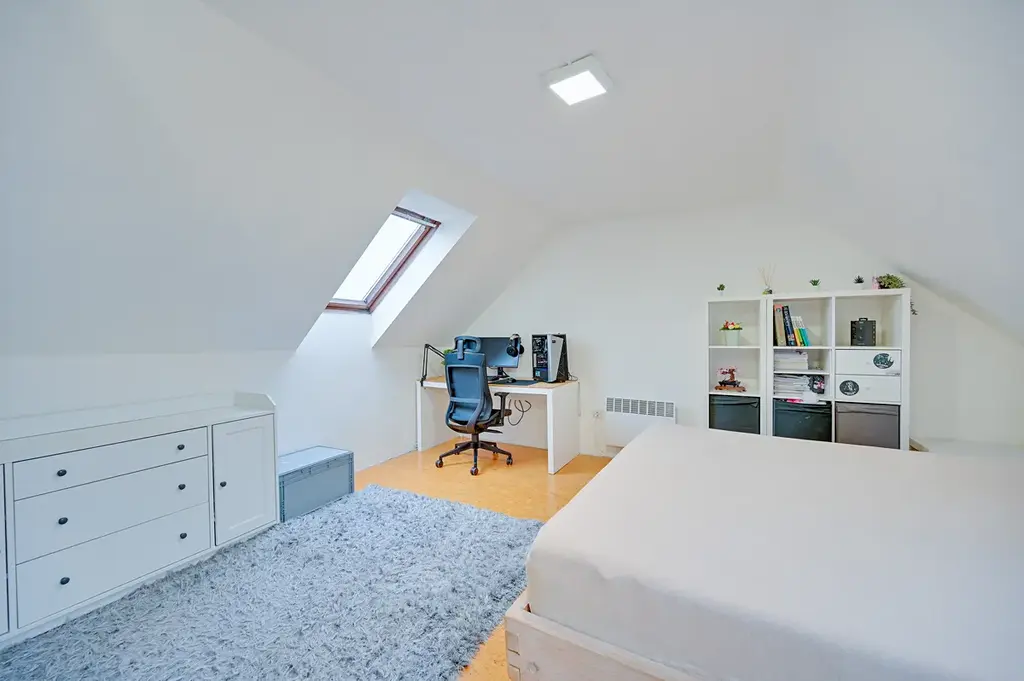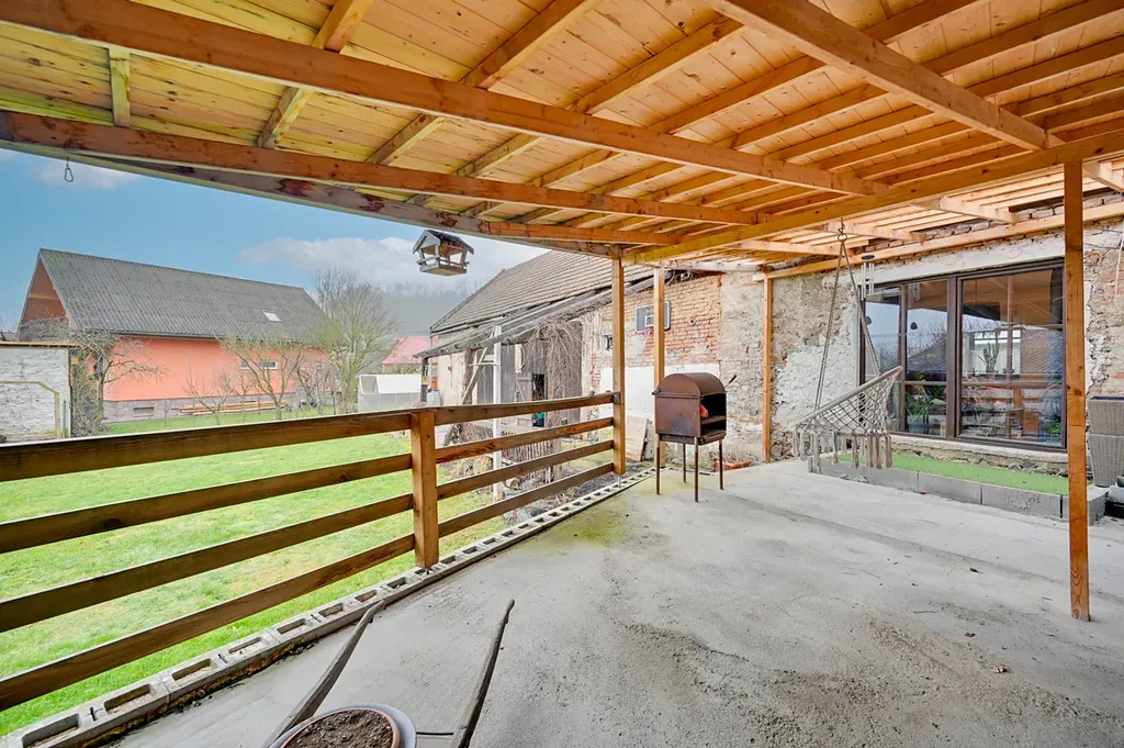 Dům disponuje užitnou plochou 91 m², která zahrnuje prostorný obývací pokoj s kuchyní a pracovnou v přízemí, dětský pokoj v patře, kde je prostor pro vybudování ještě jednoho pokoje. K domu náleží prostorná krytá terasa o rozloze 50 m² a stodola s 78 m². Pozemek s rozlohou 746 m² poskytuje dostatek prostoru pro venkovní aktivity nebo zahradničení.
