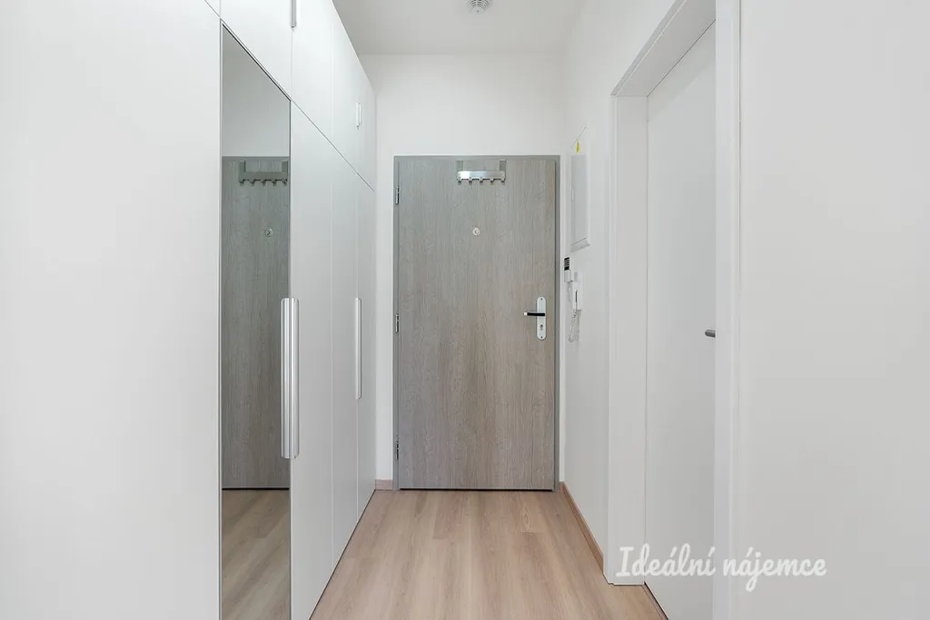 V předsíni je k dispozici vestavěná skříň a součástí bytu je i základní stínění oken (záclony a závěsy).
