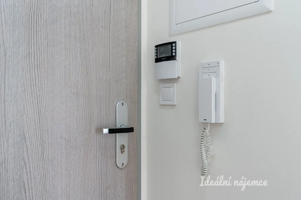 Velkým benefitem je zvýšená úroveň zabezpečení – byt i sklep jsou vybaveny elektronickým zabezpečovacím systémem Jablotron. Nechybí ani bezpečnostní vstupní dveře.