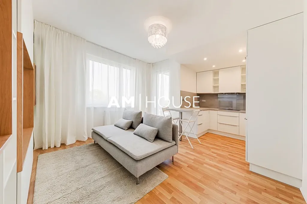 Kompletně zařízený a stylový byt se nachází v 3. nadzemním podlaží novostavby. Byt je kompletně zařízený včetně kuchyňského koutu a spotřebiče.