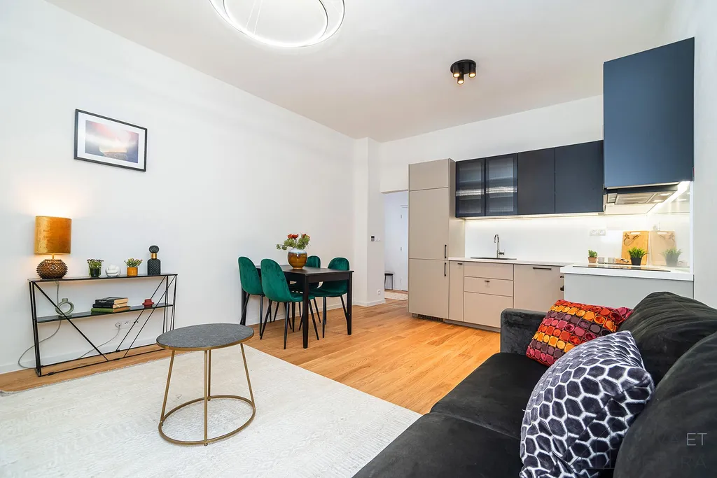 Byt prošel v loňském roce kompletní rekonstrukcí. Nábytek na fotografiích je pouze ilustrativní. Součástí vybavení je nová kuchyňská linka se spotřebiči značky Gorenje (kombinovaná chladnička s mrazákem, myčka, trouba, sklokeramická varná deska a odsavač par). V ložnici i na chodbě jsou k dispozici vestavěné skříně.