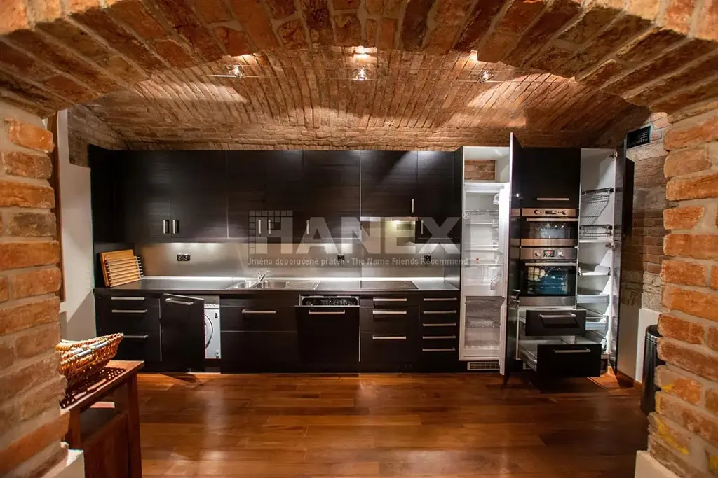 Zažijte kouzlo bydlení v tomto jedinečném zahradním apartmánu 4+1, kde na vás umění dýchne na každém kroku. Po rozsáhlé rekonstrukci, která byla dokončena v roce 2016, se jednotka proměnila v krásný stylový prostor o rozloze 160 m2, se soukromou terasou 42 m2 a zahradou 38 m2 orientovanou do klidného dvora.