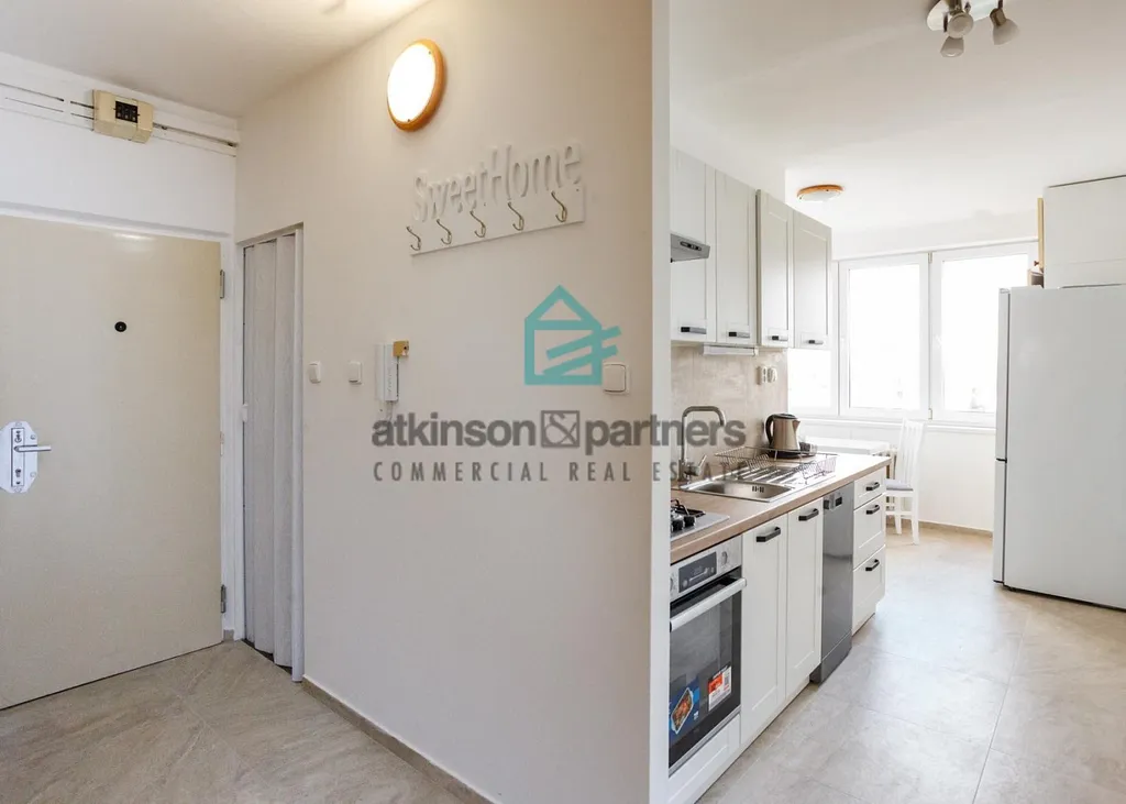 Předsíň, na jih orientovaný obývací pokoj (20 m²) se vstupem na balkon (2,25 m²) a ložnice (16 m²). Na sever je orientovaná kuchyně s jídelnou (12,5 m²). Koupelna s vanou je prosvětlena denním světlem, naproti koupelně se nachází prostorná komora vhodná jako technická místnost nebo šatna.