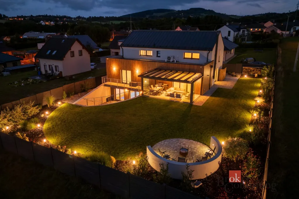 Jedinečná nabídka luxusního rodinného domu v žádané lokalitě Minkovic u Liberce, jenž byl zkolaudovaný teprve na konci roku 2023 s energetickou náročností B. Jen zde najdete ideální kombinaci životního prostoru v dispozici 6+KK a klidu na každodenní relaxaci na ploše přes 333m2, k čemuž Vám poslouží 25m2 prosklená zimní zahrada s bioklimatickým systémem s možností plného otevření a v podzemním podlaží 71m2 vnitřní bazén a sauna, společně s privátní odpočinkovou venkovní zónou. To vše s důrazem na Vaše bezpečí a pohodlí s garáží pro 2 automobily na ploše přes 46m2, elektrickými a přes aplikaci ovládanými venkovními roletami a zabezpečovacím systémem. Ideální velikost pozemku o velikosti 787m Vám zaručí dostatek prostoru celé Vaší rodině nebo na setkávání s přáteli, kde samozřejmě nechybí integrované zavlažování. A s příchodem soumraku, kdy dům rozzáří noční osvětlení, si to tu teprve zamilujete. Tak neváhejte a přijeďte se osobně přesvědčit, že tento dům byl stvořen přímo pro Vás.