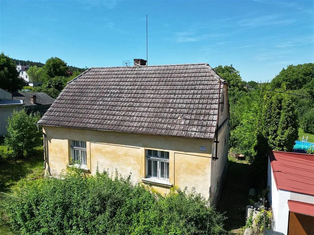 Součástí prodeje je přízemní rodinný dům o dispozici 2+kk, částečně podsklepený, s aktuální užitnou plochou 68 m². Objekt je určen ke kompletní rekonstrukci nebo demolici. Současní majitelé měli zpracovanou studii přestavby na moderní patrový dům 5+kk s dvojgaráží, která je k dispozici mezi fotografiemi – můžete ji využít jako inspiraci pro své vlastní bydlení.