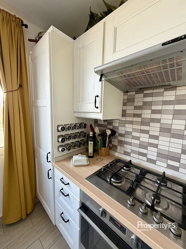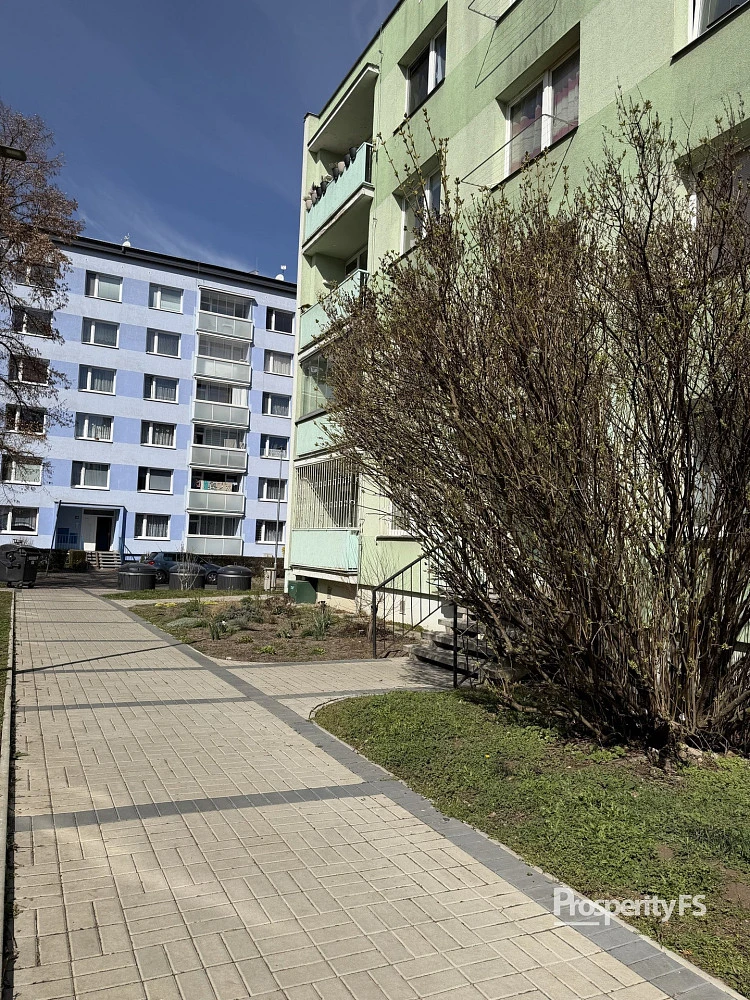 Interiér zahrnuje samostatný obývací pokoj, kuchyni, ložnici a dětský pokoj, koupelnu s vanou a WC. K bytu náleží slunný balkon, na chodbě je k dispozici koje pro úložné účely a vestavěná skříň, která zůstává součástí bytu.