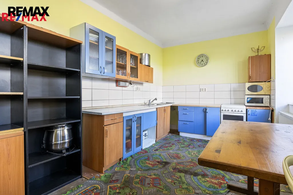 Nemovitost je částečně zrekonstruována a momentálně slouží jako zázemí dnes stále fungujícího motorkářského klubu. Najdete zde zařízenou kuchyň, stylový bar s prostorným sálem, pokoj, koupelnu, toalety a mnoho sklepních místností. Celkem tedy 129 m2 užitné plochy vhodné pro vytvoření útulného bydlení, k tomu téměř 100 m2 sklepních místností, a kryté venkovní sezení. Rozsáhlé podkroví nabízí možnost dostavby dalšího patra, a tím ještě rozšíření obytných nebo komerčních prostor.