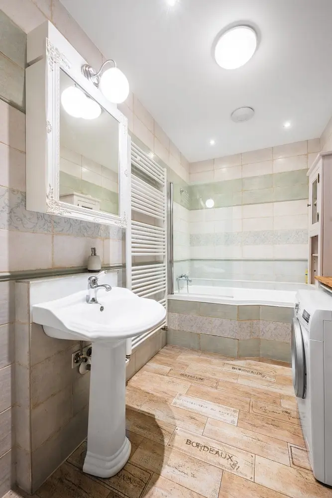 O komfort v chladném období se stará plynový kotel s radiátory. Velkou přidanou hodnotu přináší elegantní krbová kamna, která prohřejí celý byt a dokreslí atmosféru v zimních měsících. Díky tomu lze i snížit náklady na bydlení, které v komfortním režimu činí zhruba 3000 Kč/měs za plyn (topení + TUV) a 1500 Kč/měs za elektřinu. Za vodu platí průměrná čtyřčlenná rodina okolo 700 Kč/měs.