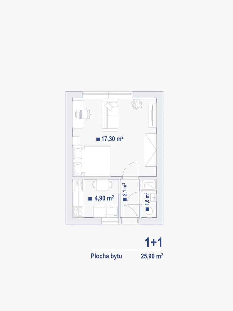 - dispozice 1+1 (vyšší nájem než 1kk)