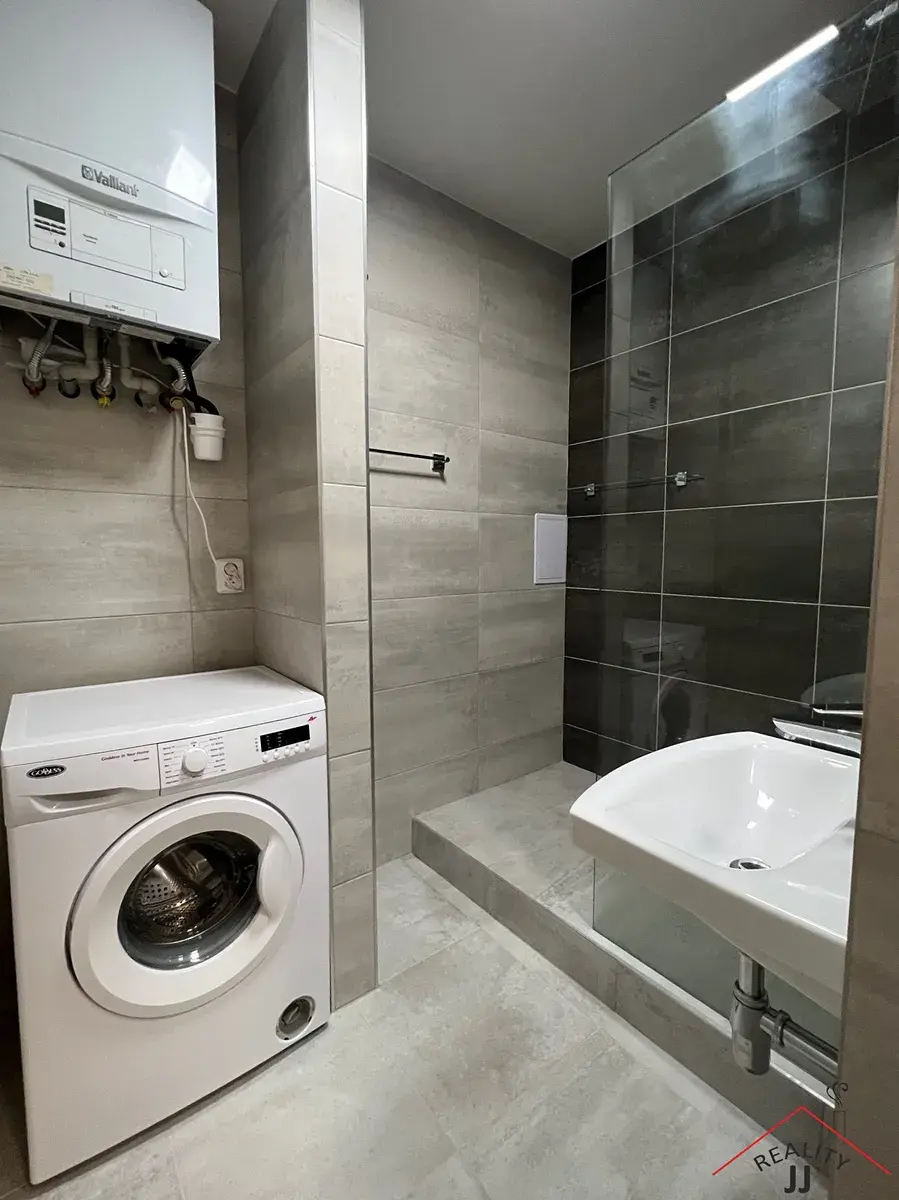Interiér bytu prošel kompletní rekonstrukcí. Sestává ze dvou průchozích místností - obývacího pokoje a ložnice, dále malé kuchyňky vybavené linkou s praktickou potravinovou skříní, lednicí s mrazákem, plynovým sporákem a digestoří, koupelny se sprchovým koutem a pračkou, samostatné toalety s umývátkem rukou a malé šatny. K bytu náleží sklep.