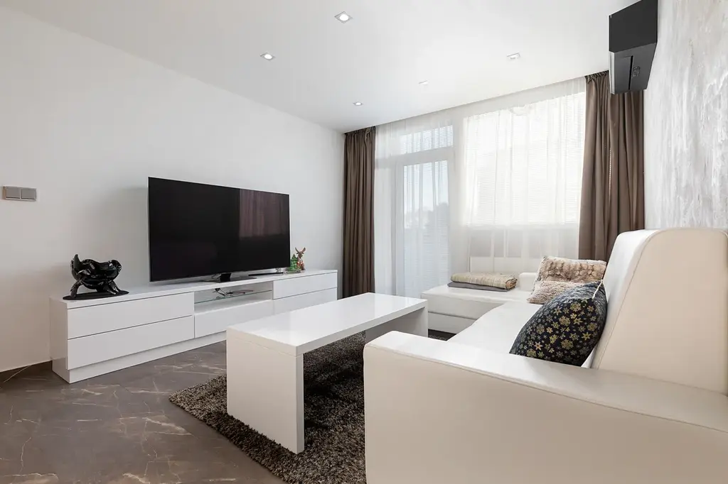 Celková užitná plocha bytu činí 65 m2 a zahrnuje i dva praktické balkóny. Sklep poskytuje další úložné prostory a vybavení bytu je již zahrnuto v ceně (kromě postele).