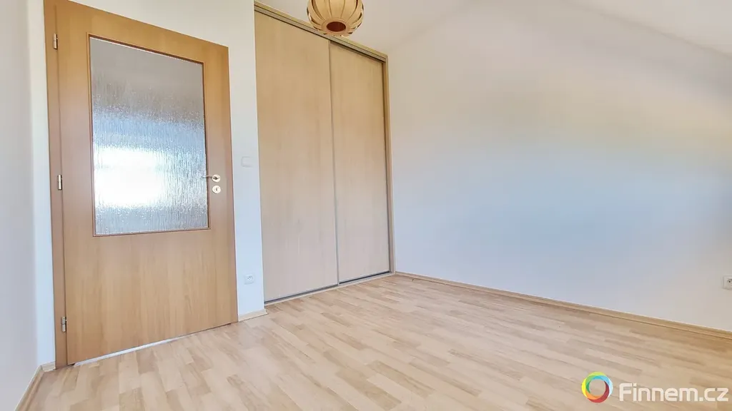 V patře jsou pak tři samostatné pokoje, každý vybavený velkou vestavnou skříní, hlavní koupelna s toaletou a chodba se schodištěm do přízemí.