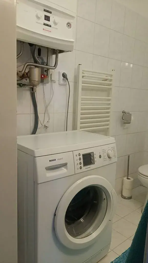 Byt je vytápěný vlastním plynovým kotlem, zajišťujícím současně i ohřev vody.
