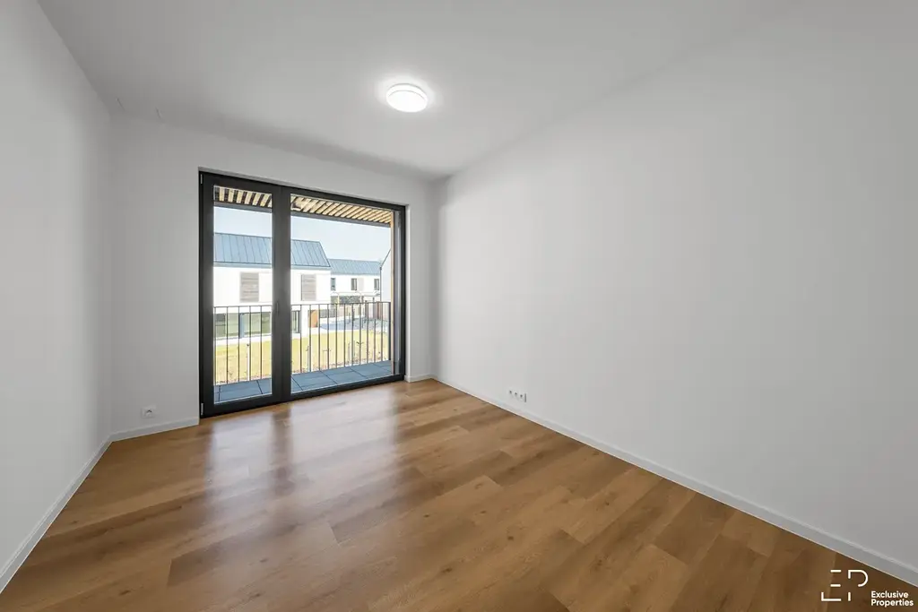 Dispozice: vstupní chodba (prostor pro vestavěnou šatní skříň a pračku), koupelna s vanou, samostatné WC, obývací pokoj s prostorem pro obývací část a prostorově oddělenou kuchyň se sezením, dvě ložnice s terasou. Součástí bytu je prostorná sklepní 5,2m2 kóje a jedno kryté parkovací stání (širší 3,4m) v části jen dvou parkovacích stání, přímo vedle vchodu k bytu.