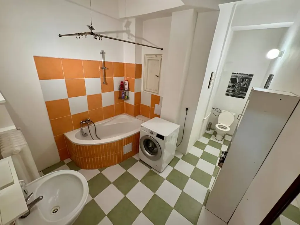Dispozice bytu zahrnuje předsíň, samostatnou kuchyň vybavenou myčkou, prostornou koupelnu s toaletou a rohovou vanou a dva samostatné pokoje s dřevěnými parketami – v jednom z nich se nachází praktická šatna. Vysoké stropy o výšce 3,10 m poskytují možnost vybudování patra na spaní nebo úložného prostoru. K bytu náleží sklepní kóje a v domě je k dispozici výtah.