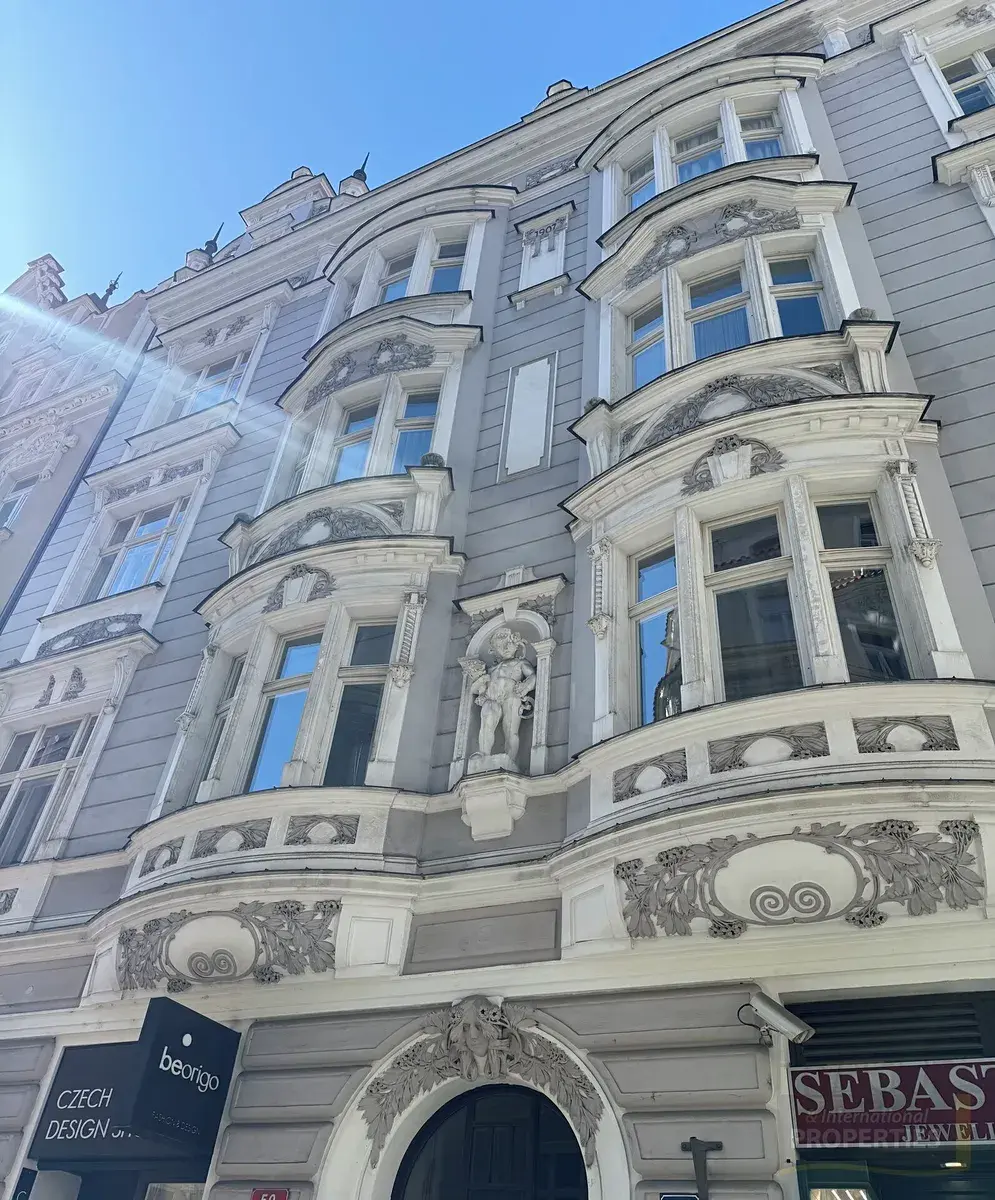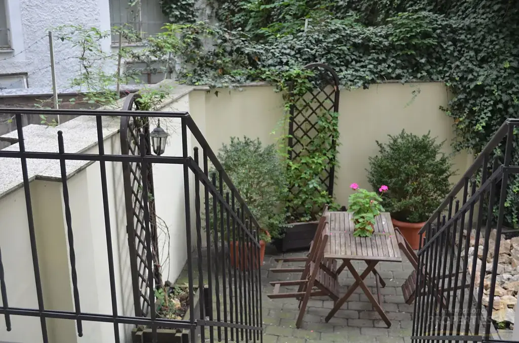 Exkluzivní secesní apartmán 2+1 o rozloze 54 m² v srdci Starého Města — Maiselova, Praha 1. Velmi vkusně zařízený byt ve zvýšeném přízemí reprezentativní budovy s recepcí je orientován do zeleného vnitrobloku. Nabízí vstupní halu, samostatnou plně vybavenou kuchyni, útulnou ložnici a koupelnu s vanou. Světlý obývací pokoj s pohodlnou rozkládací sedací soupravou, křeslem, TV stěnou a elegantní jídelní zónou plynule navazuje na soukromou terasu s posezením a zeleným dvorkem — část dvora o výměře 45,82 m² je výlučně užívána vlastníkem jednotky. Byt se pyšní francouzskými okny jak v ložnici, tak v obývacím pokoji, která vnášejí do interiéru světlo a přímé propojení s terasou. Komfortní kombinace městského života a klidného zeleného zázemí uprostřed historického centra. Všechny služby, exkluzivní butiky, kavárny a restaurace v dosahu, OC Palladium i Kotva cca 10 min pěšky, metro Staroměstská pouhé 3 minuty. Ideální jako prestižní bydlení i výnosná investice pro krátkodobé pronájmy. Luxusní adresa, která okouzlí.