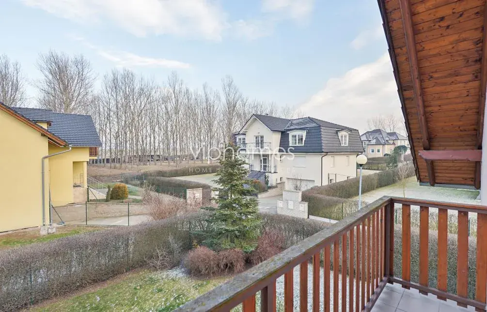 Moderní dvoupodlažní dům (5+kk), situovaný v nově postavené rezidenční oblasti ve vyhledávané lokalitě v Průhonicích, cca 15 min. jízdy od centra Prahy. Lokalita s kvalitní občanskou vybaveností, v pěším dosahu proslulého Průhonického zámku a Botanické zahrady. Množství hotelů a restaurací, včetně malého pivovaru, dodávají obci hlavně v letních měsících své kouzlo. Asi ve vzdálenosti 1000 m od obce najdete velké nákupní centrum a rozlehlý „vodní park", který ocení hlavně děti.