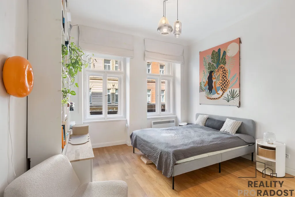 K nastěhování od 15.05.26. Nabízíme k pronájmu částečně zařízený byt 2+kk (1+1) o výměře 43 m², který se nachází v 1. patře cihlového domu s výtahem, na ulici Vita Nejedlého, Praha 3 – Žižkov.