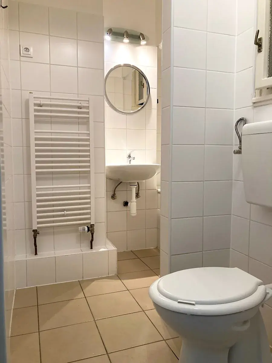 společné s WC je na podlaze keramická dlažba, v chodbě a obou pokojích