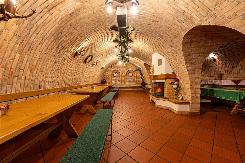 Nabízený objekt tří vzájemně propojených vinných sklepů nabízí více než 500 m² užitné plochy. Najdete zde nejen sedm kvelbených sklepů různých velikostí s více než stovkou míst k posezení, ale také kuchyni, kanceláře, sklepní prostory se stovkami nejrůznější nádob i archivních boxů. V horních podlažích je rovněž řada skladů s místy pro uskladnění vinařského vybavení a strojů a v podkroví jednoho ze sklepů se nabízí dokonce možnost ubytování až pro 20 osob.