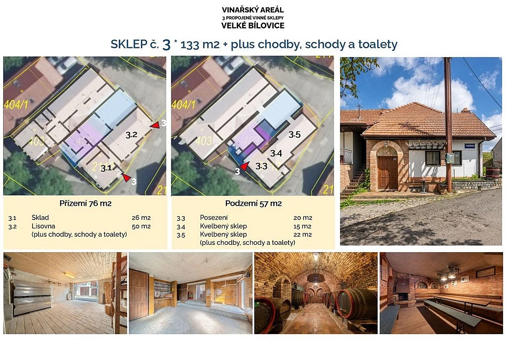 Hledáte kouzelné místo na jižní Moravě s turistickým duchem a neuvěřitelným potenciálem pro podnikání? Pak vás tento soubor tří propojených vinných sklepů ve Velkých Bílovicích, v lokalitě několika desítek vinných sklepů ve vyhledávané vinařské čtvrti zvané Belegrady, rozhodně zaujme!