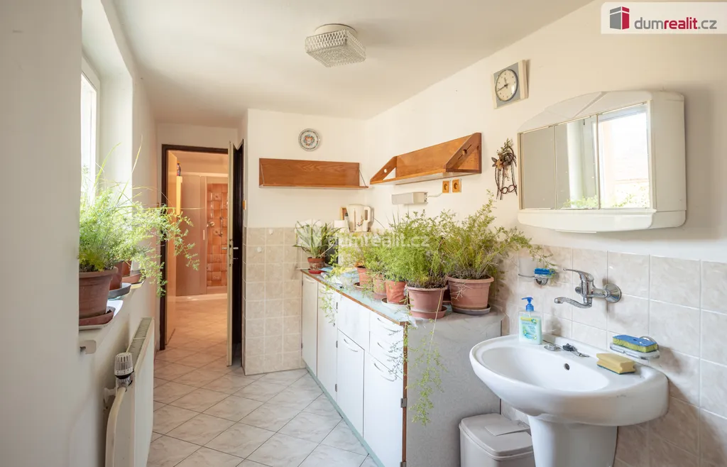 K domu náleží garáž, dílna a velká zahrada, která směřuje do vnitrobloku za dům a může zde být i varianta výstavby nového RD. Soukromí a klid je to, co Vám tato nemovitost může nabídnout.