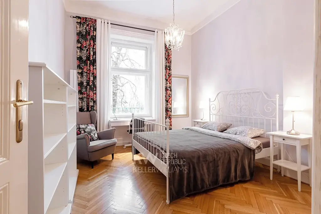 Nedávná rekonstrukce, krásné kazetové parkety, či vysoké stropy, to je jen zlomek toho, co tento byt nabízí. Kromě plně vybavené kuch. linky kombinované s obývacím pokojem, se zde nachází i dvě oddělené ložnice. Každá ložnice je vybavena manželskou postelí, skříní a skříňkami. V koupelně se nachází sprchový kout a pračka kombinovaná se sušičkou.