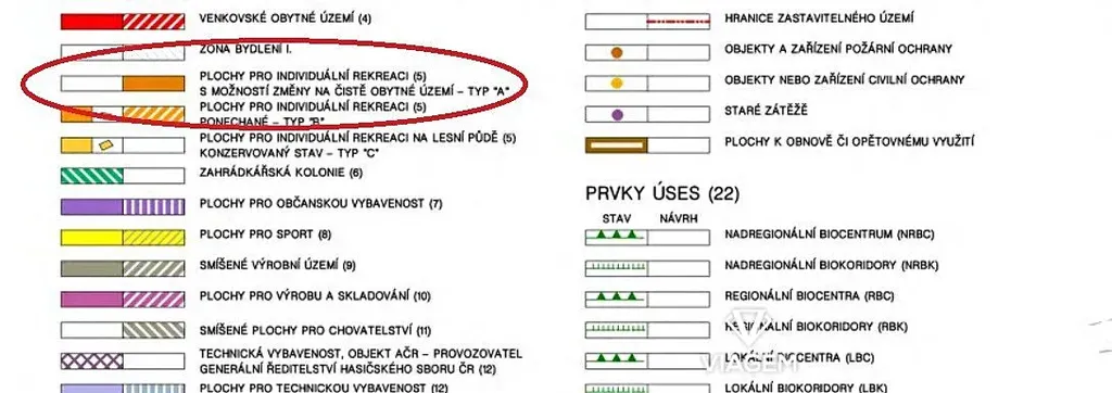 Pozemek je možné využívat k rekreačním účelům jako zahradu. Případně lze pozemek vnímat jako spekulační pro budoucí výstavbu RD viz. platný Územní plán v obrazové dokumentaci inzerátu.