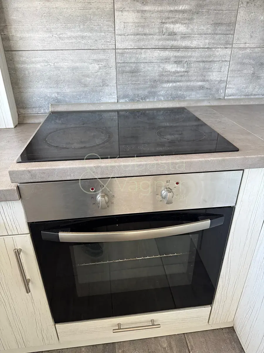 - kuchyňský kout s digestoří, elektrickou varnou deskou, elektrickou troubou a lednicí