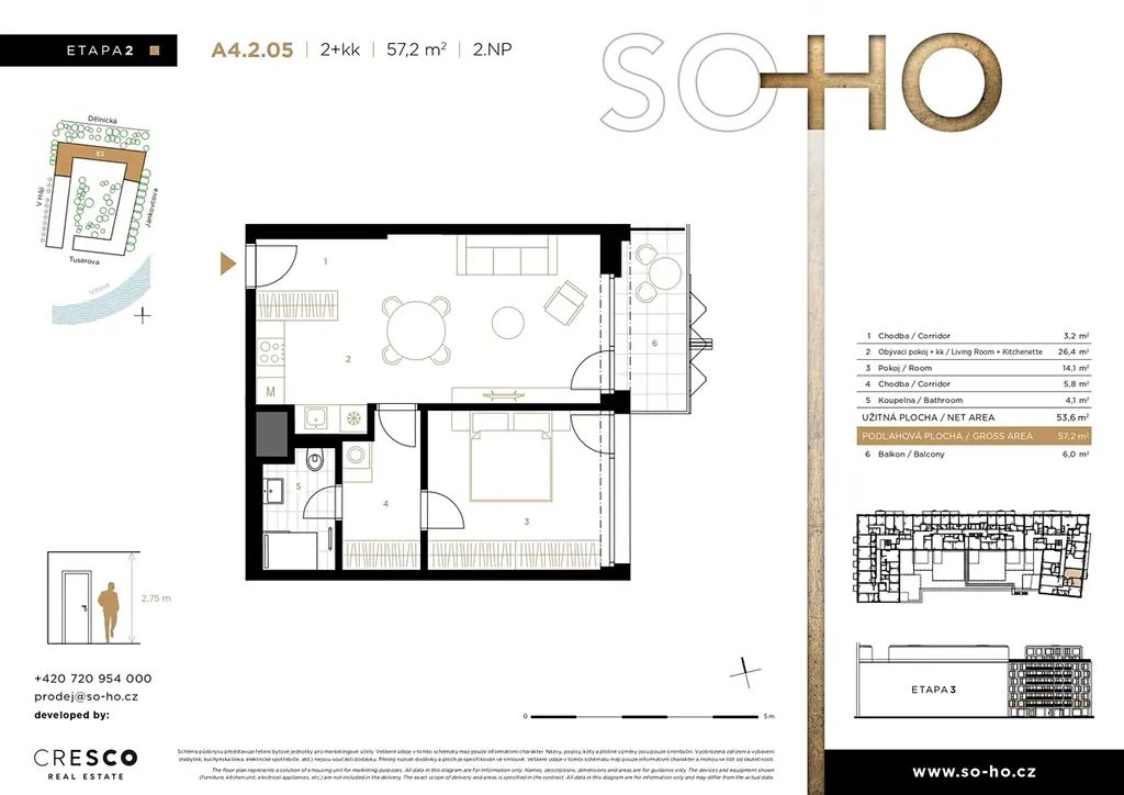 Více informací o tomto bytě, projektu a aktuální nabídce bytů z 2. etapy najdete na webových stránkách projektu. Rádi vás přivítáme také v našem prodejním centru: