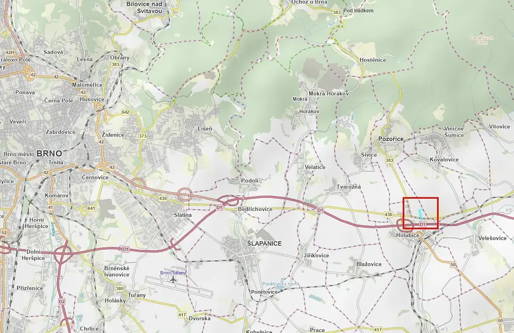 • Přímá dostupnost: Pozemek leží u silnice II/430 (stará dálnice na Vyškov), což zajišťuje perfektní příjezd pro veškerou techniku.
