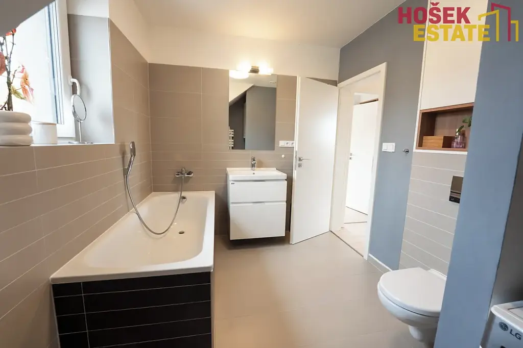Dispozice 4+kk nabízí praktické a funkční uspořádání prostoru. Součástí domu je kvalitní vestavěný nábytek, který zajišťuje maximální využití prostoru a čistý, nadčasový vzhled interiéru.