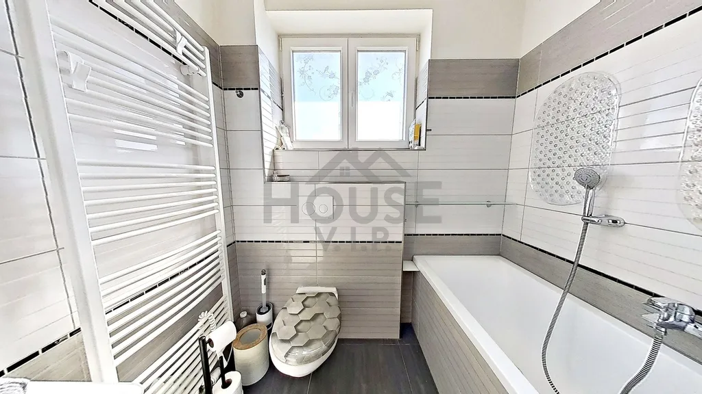 Byt byl dokončen v roce 2018 a je ve velmi dobrém technickém stavu. Dispozice nabízí obývací pokoj s kuchyňským koutem, ložnici s pracovním koutem, prostorný dětský pokoj, dvě koupelny (vana i sprchový kout) a komoru (3 m²). Velkým benefitem je pochozí půda o výměře cca 40 m², která poskytuje dostatek úložného prostoru. Okna jsou orientována na jihovýchod.