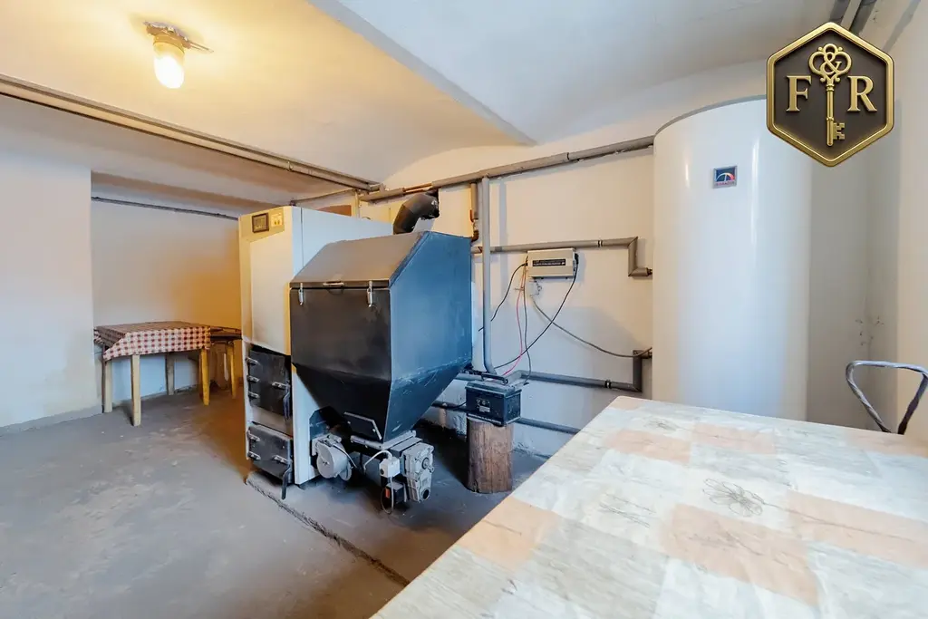 Užitná plocha je 246 m² (PP 56 m², 1.NP 110 m², podkroví 81 m²) + balkon >5 m² + stodola + garáž + dílna + skleník.