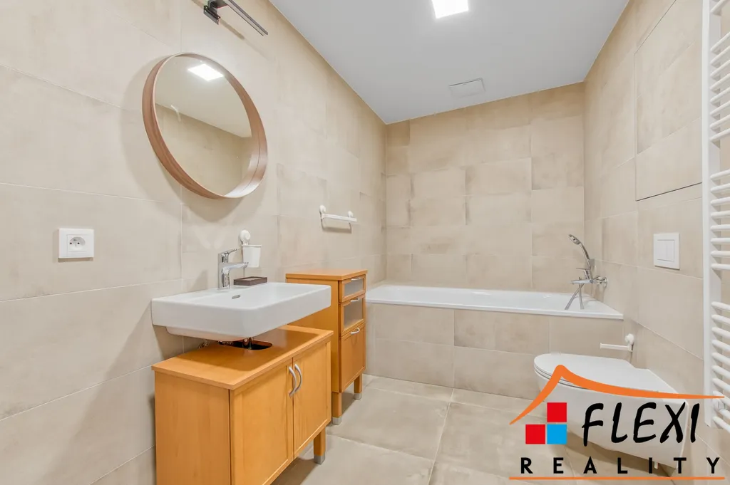 K dispozici vlastní, parkovací stání v podzemní garáži za poplatek 1.500,-Kč (byt lze pronajmout i bez něj) a prostorná, sklepní kóje.