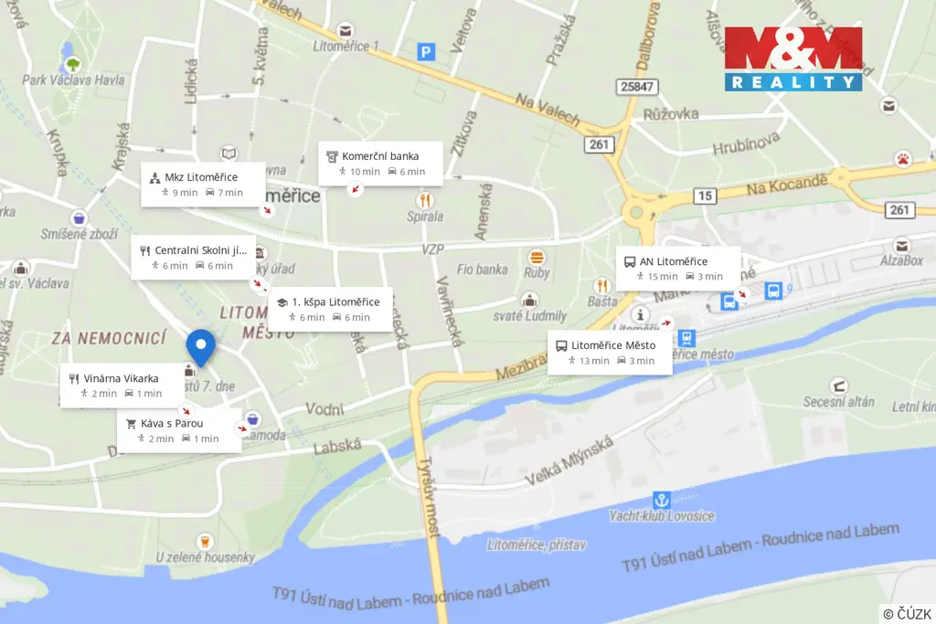 Pronájem bytu 4+1 ve staré zástavbě v historickém centru královského města Litoměřice. Byt o výměře cca 79 m2 se nachází ve 2. patře historické budovy. Byt se skládá z kuchyně, ložnice, obývacím pokojem a dvou menších pokojíku. V prostorné koupelně se nachází vana, umyvadlo a místo na pračku, z koupelny vede dále vstup na toaletu a terasu s krbem a dá se na terasu umístit i vířivý bazének. V bytě jsou koberce, PVC linoleum, dlažba. Vytápění zajišťuje centrální kotelna v domě, ohřev vody elektrickým boilerem. K dispozici je internet. Parkování je možné v uzavřeném dvoře, pozemku budovy (1 parkovací místo). Možno využívat i zahradu. Měsíční nájemné je včetně všech energií uvedeno u makléře. Majitel má výhradní právo si vybrat nájemníka. Pro více informací, a domluvení prohlídky, volejte makléře.