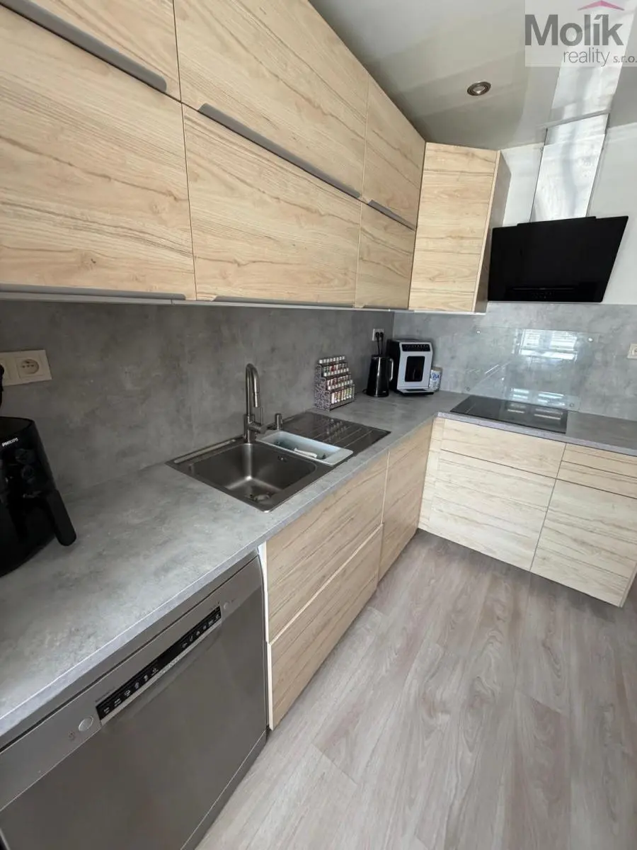 Byt prošel kompletní a nákladnou rekonstrukcí. V rámci úprav byly realizovány kompletně nové rozvody elektřiny, vody i odpadů, nové štuky, podlahové krytiny, interiérové dveře a moderní koupelna i kuchyně. Celý prostor působí velmi příjemně, světle a útulně.