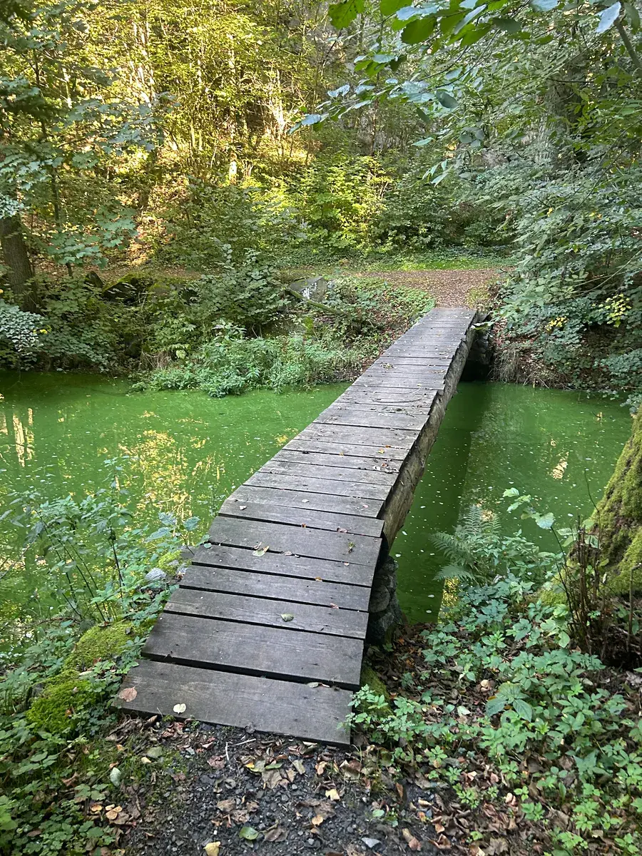 Přístup k chatě je pěšky po lesní cestě přes dřevěný můstek vedoucí přes potok.