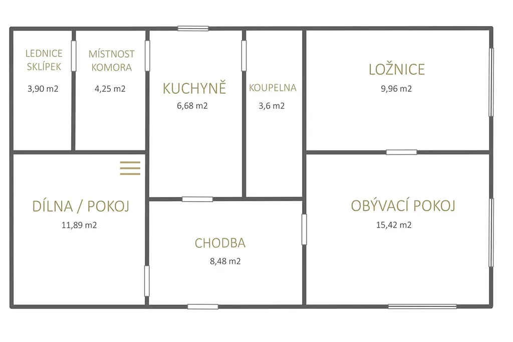 Dům je vedený jako rodinný dům, takže ho můžete bez problémů využívat celoročně – ať už na trvalé bydlení, nebo jako víkendový únik z města.