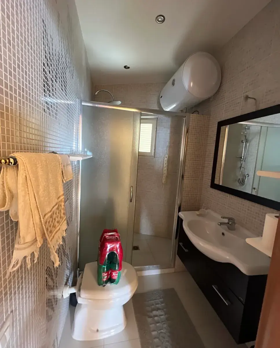 Interiér je vybaven elegantním nábytkem a krbem, což vytváří příjemnou atmosféru po celý rok. Jen 800 metrů od domu se nachází krásné azurové moře – ideální volba pro milovníky života u vody.
