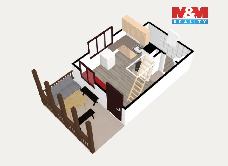 Terasovitý pozemek nabízí skleník, udržovaný trávník, dětskou prolézačku i romantické jezírko. Ideální místo pro rodinu, relax i víkendové úniky z města. Krytá terasa zve k ranní kávě i večernímu grilování, podkroví pak poskytne pohodlné přespání.