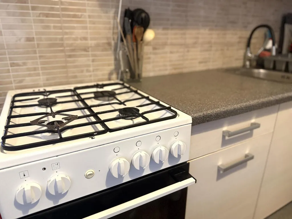 Po levé straně vstupujeme do útulné kuchyně o výměře cca 9,1 m and sup2;, která je vybavena kuchyňskou linkou, kombinovaným sporákem, lednicí a jídelním stolem se židlemi. Kuchyně je orientována na západ.