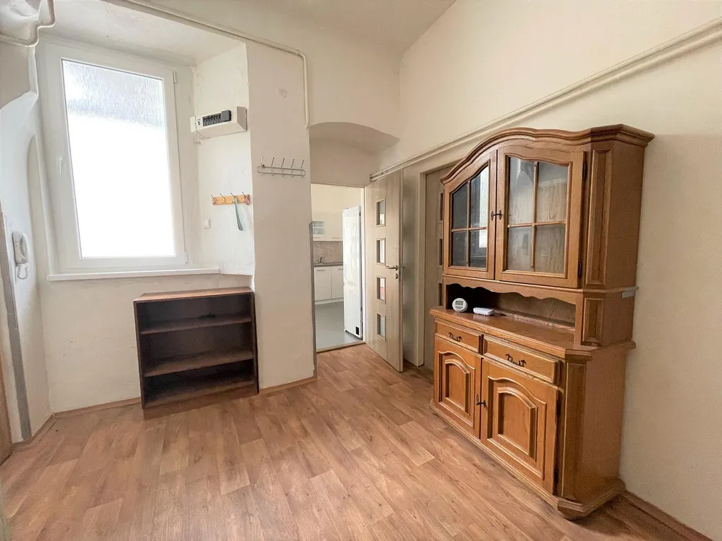 Za vstupními dveřmi se nachází prostorná chodba o výměře cca 12 m and sup2;, která je vybavena menší částečně prosklenou skříní. Součástí chodby je také plynový kotel, jenž zajišťuje vytápění celého bytu. Před cca dvěma lety byla zrenovována a položena nová podlaha v předsíni.