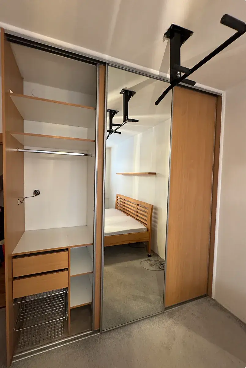 ložnice (16 m²) s nadstandardně velkou vestavnou skříní + postel