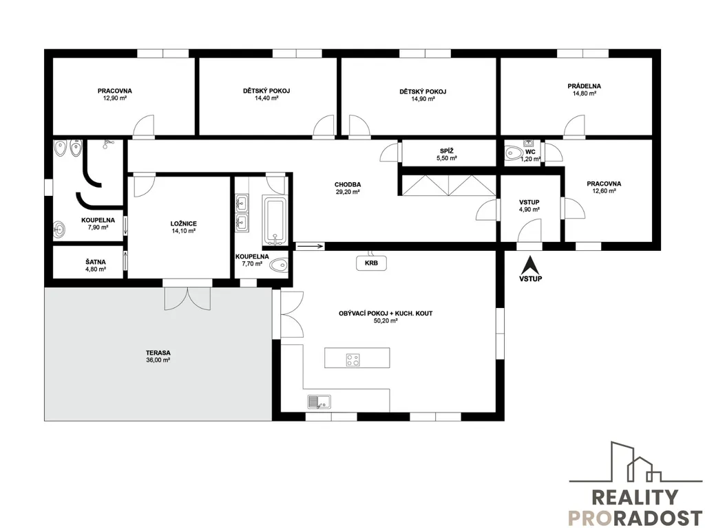 ° dispozice RD - 5+kk + 2 další místnosti v oddělené části domu, které lze využít pro práci z domu, anebo pro podnikání