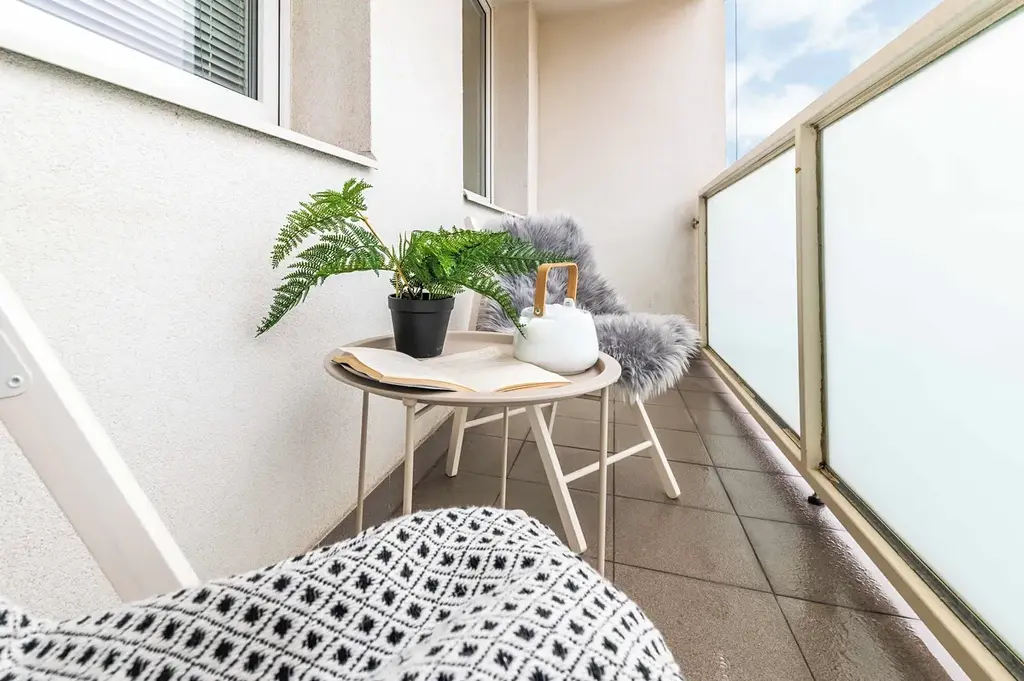 Jednotka také disponuje dvěma prostornými lodžiemi, které přirozeně propojují interiér bytu s venkovním prostorem. Nabízejí místo pro ranní kávu, odpočinek po práci i klidné chvíle na čerstvém vzduchu, aniž byste museli opustit pohodlí domova. Lodžie rozšiřují obytný prostor a posilují pocit volnosti, který je u městského bydlení stále vzácnější.