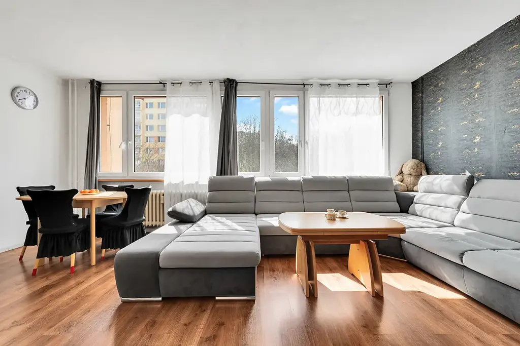 Nabízím k prodeji prostorný byt v osobním vlastnictví o dispozici 4+1 s lodžií a celkové ploše 84 m², který se nachází ve 4. nadzemním podlaží revitalizovaného panelového domu s výtahem v širším centru města s velkým neplaceným parkovištěm před domem.