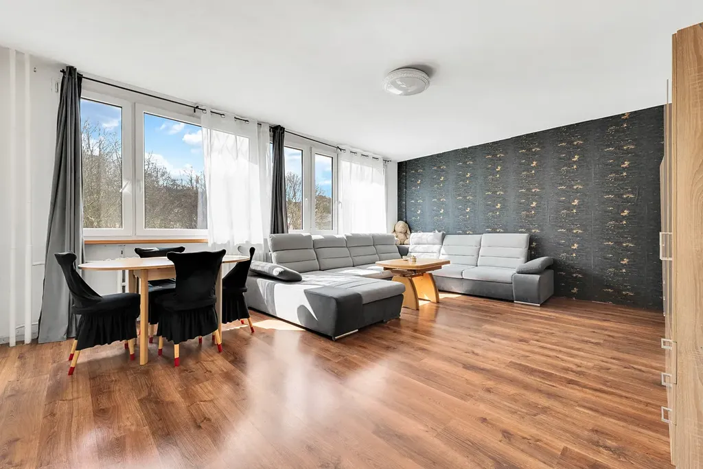 Byt nabízí 3 samostatné ložnice a prostorný obývací pokoj s velkým kuchyňským koutem, což zajišťuje dostatek prostoru pro rodinné bydlení i investiční využití (pronájem více osobám).