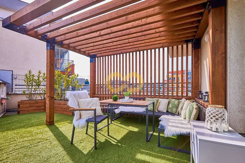 Spousta místa, léto pod pergolou, vlastní garáž… a přitom žádné starosti s trávníkem, listím a věčnými opravami. Tenhle byt vám nabídne výhody rodinného domu, ale bez víkendů strávených v montérkách. Přijeďte se na něj podívat do Letňan.